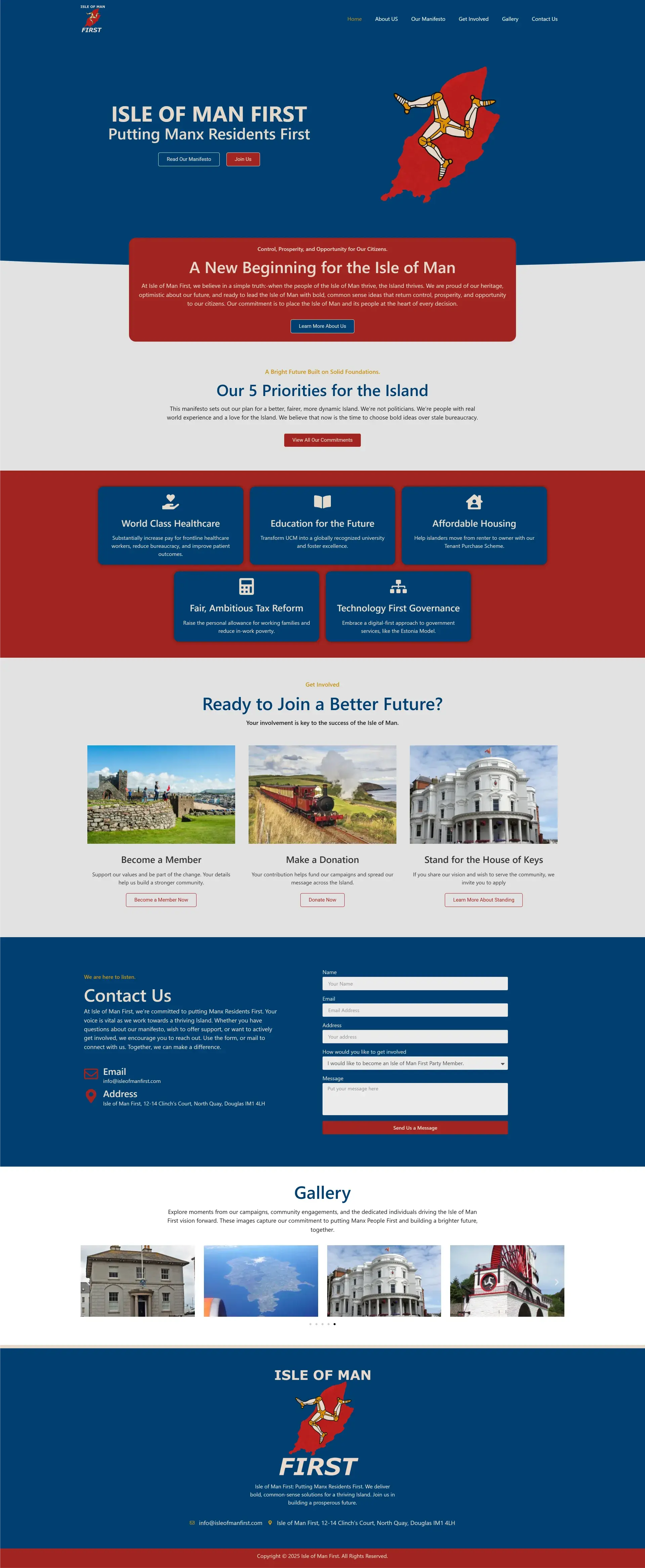 En Octonove, tuvimos el placer de diseñar y desarrollar la landing page oficial de Isle of Man First, un partido político que nace con la firme intención de representar con voz clara y decidida los intereses del pueblo manés. El reto fue crear un sitio web impactante, funcional y adaptable, que reflejara los valores de transparencia, cercanía y compromiso que defiende el partido.