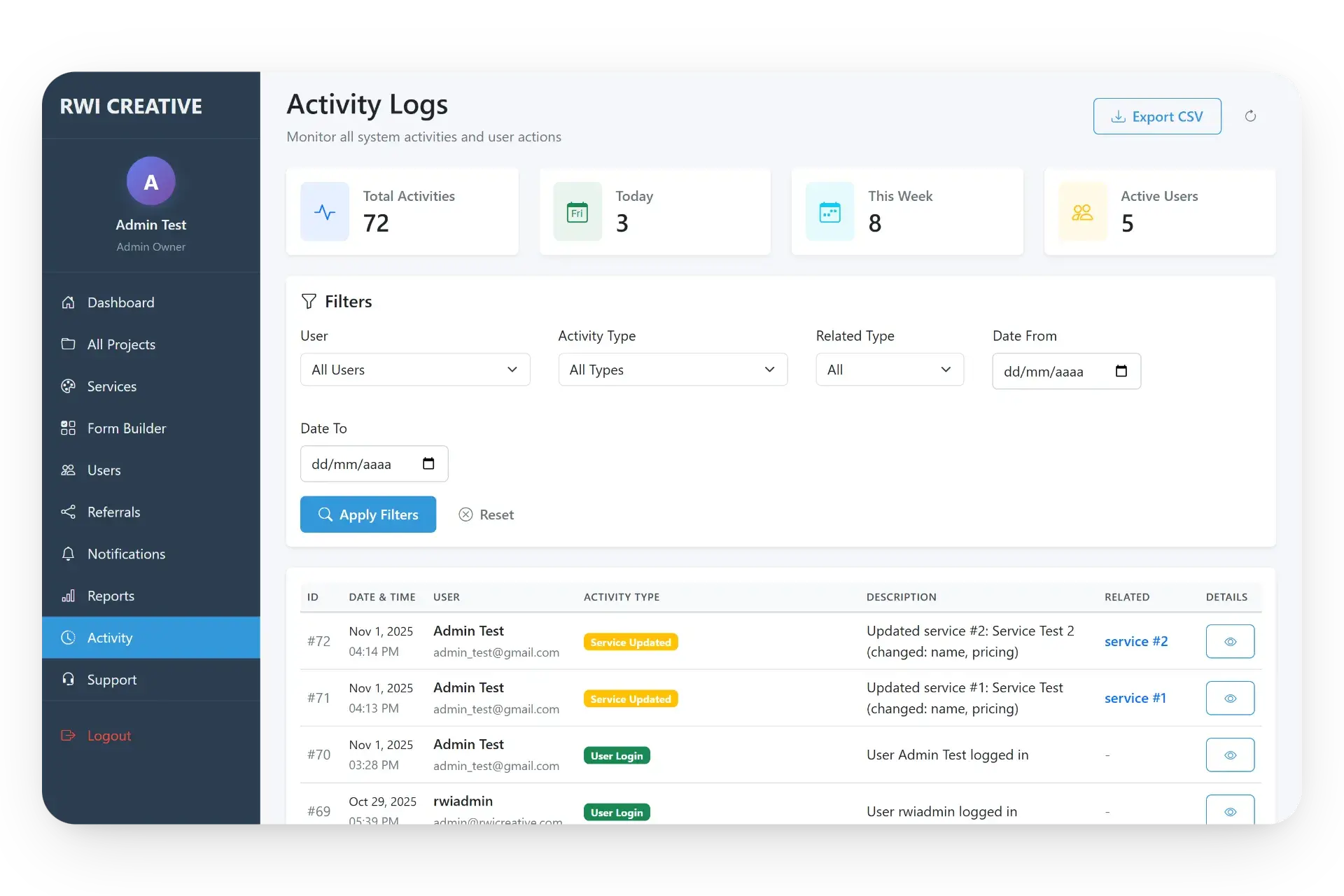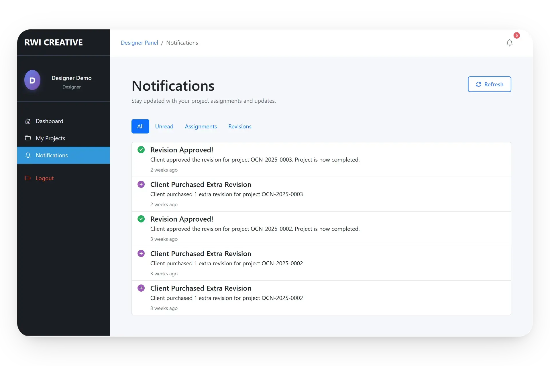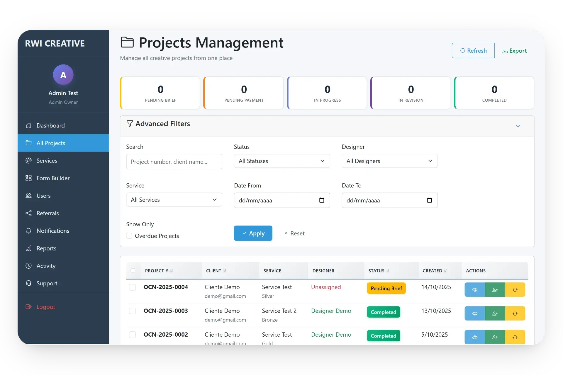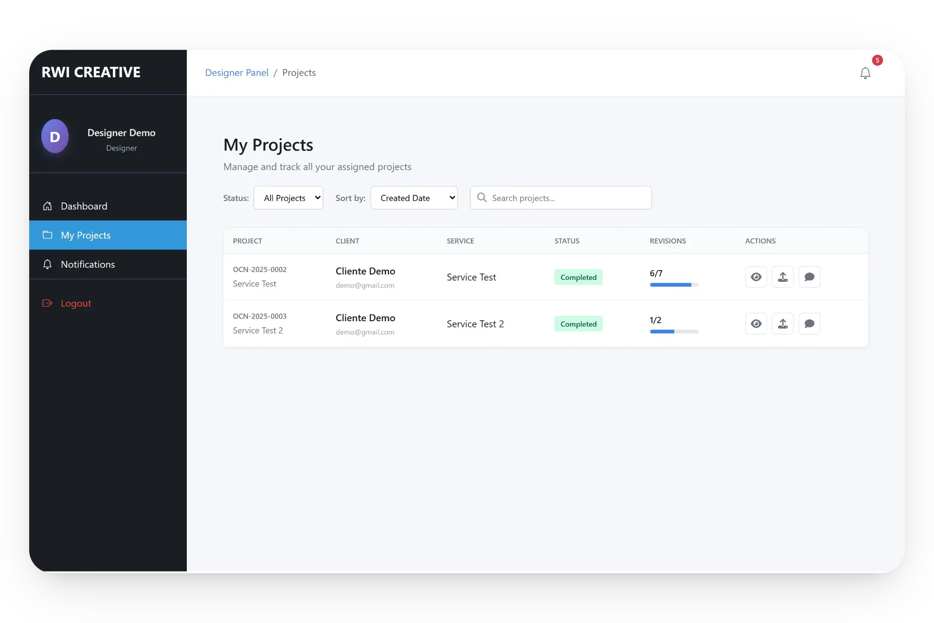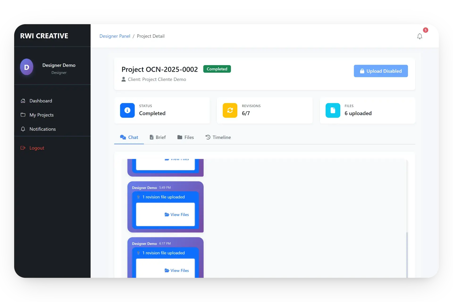 Un plugin desarrollado por Octonove que convierte WordPress en una potente plataforma de gestión de proyectos de diseño online. Diseñado para RWI Creative, permite conectar administradores, diseñadores y clientes dentro de un entorno colaborativo, intuitivo y totalmente personalizable.
