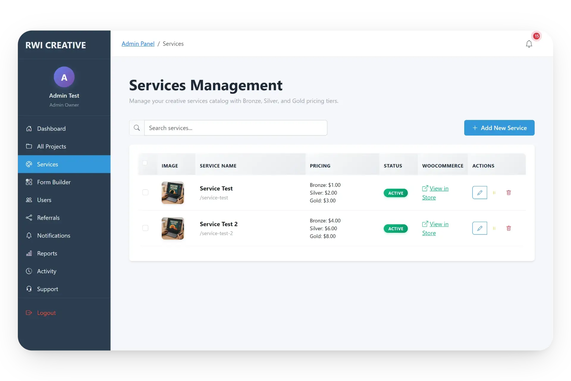Plugin de WordPress desarrollado para RWI Creative que añade una plataforma para la venta de servicios online conectado con WooCommerce.